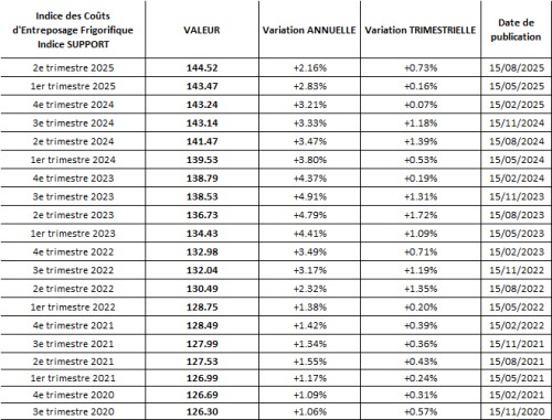 L'Indice Support est l'une des quatre composantes de l'indice des Coûts d'Entreposage Frigorifique.