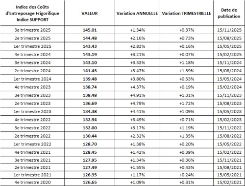 L'Indice Support est l'une des quatre composantes de l'indice des Coûts d'Entreposage Frigorifique.
